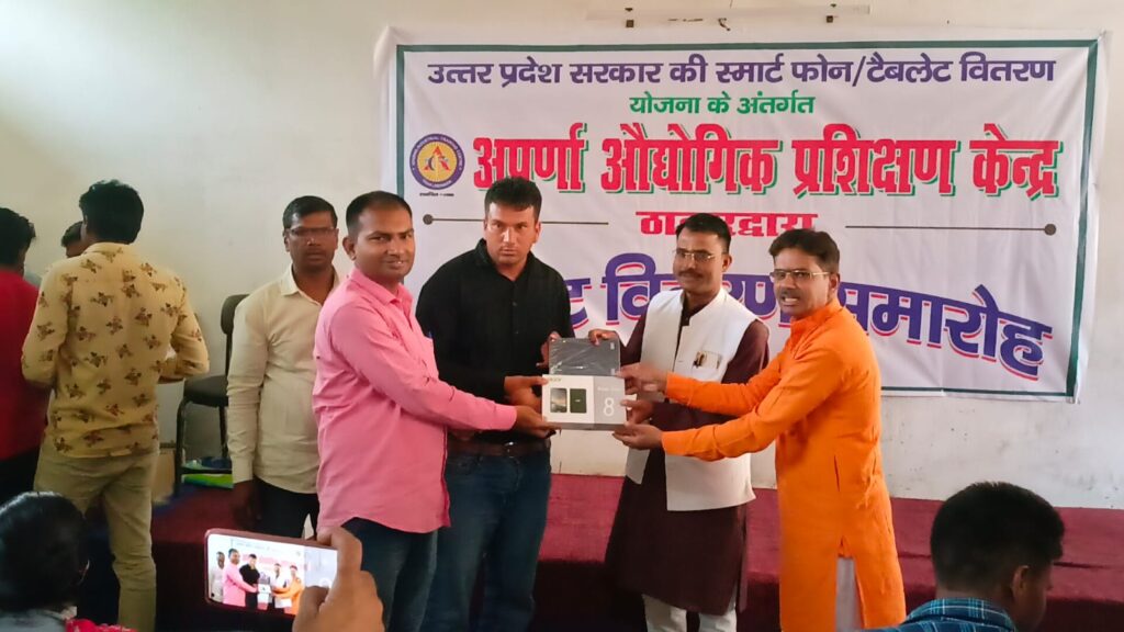 अपर्णा ओद्यौगिक प्रशिक्षण केंद्र,ठाकुरद्वारा में उत्तर प्रदेश सरकार की योजना के अंतर्गत आईटीआई कोर्स करने वाले छात्रों को टैबलेट वितरण किया गया। कार्यक्रम में मुख्य अतिथि डॉक्टर वीर सिंह सैनी(ब्लॉक प्रमुख पति) एवम श्री शिवेंद्र गुप्ता जी (भारतीय जनता पार्टी के वरिष्ठ नेता) ने अपर्णा ओद्यौगिक प्रशिक्षण केंद्र ठाकुरद्वारा में आईटीआई के अंतिम वर्ष में अध्ययनरत छात्रों को टैबलेट दिए। कार्यक्रम को संबोधित करते हुए शिवेंद्र गुप्ता जी ने कहा कि छात्रों को नौकरी की पढ़ाई के साथ जीवन के मूल्य समझने वाली पढ़ाई भी करनी चाहिए। बिना मूल्यों का जीवन व्यर्थ है।