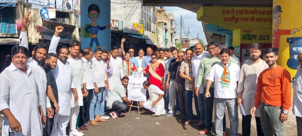 काशीपुर। प्रदेश कांग्रेस कमेटी अध्यक्ष करन माहरा के निर्देशानुसार अखिल भारतीय कांग्रेस कमेटी के पूर्व अध्यक्ष राहुल गाँधी के खिलाफ गुजरात हाई कोर्ट के फैसले पर कांग्रेसजनों द्वारा महानगर कांग्रेस कमेटी अध्यक्ष मुशर्रफ हुसैन के नेतृत्व में आज महाराणा प्रताप चौक पर मोदी सरकार का पुतला दहन किया गया।