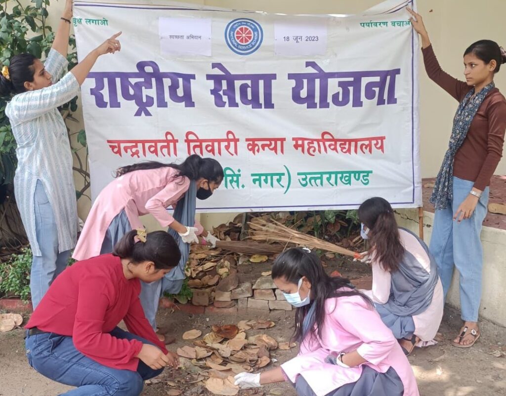 काशीपुर। चन्द्रावती तिवारी कन्या स्नातकोत्तर महाविद्यालय द्वारा स्वच्छता अभियान के अन्तर्गत एनएसएस के स्वंयसेवियों ने महाविद्यालय परिसर में श्रमदान कर स्वच्छता अभियान चलाया। स्वंयसेवकों ने स्लोगन के माध्यम से जनमानस को स्वच्छता कार्यक्रम में सहभागिता करने के लिए प्रेरित किया। इस अवसर पर कार्यक्रम अधिकारी डॉ. वन्दना सिंह, डॉ. गीता मेहरा, असि. प्रोफेसर डॉ. रंजना, रोशन चौधरी, घनश्याम राम, भीमराम आदि उपस्थित थे।