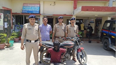 काशीपुर । मानपुर रोड स्थित मेडिकल कालेज भवन के बाहर से चोरी की गई बाइक बरामद कर पुलिस ने बाइक चोर को गिरफ्तार कर लिया। बताते चलें कि ग्राम सापुर थाना भोजपुर जिला मुरादाबाद यूपी निवासी जाविर पुत्र शाहिद ने कोतवाली पुलिस को तहरीर देकर बताया कि वह उजाला अस्पताल के पास जीवन रेखा मेडिकल में सटरिंग का कार्य करता है। 26 मई की सांय उसने भोजपुर निवासी अपने रिश्तेदार की बजाज प्लेटिना बाइक संख्या-यूपी-21-बीसी-6645 मेडिकल कालेज भवन के बाहर लाॅक लगाकर खड़ी की थी। अगली सुबह बाइक वहां से गायब थी। काफी तलाश किया परन्तु कुछ पता नहीं चला। मेरी मोटरसाईकिल चोरी हो गई है। पुलिस ने धारा 379 आईपीसी के तहत केस दर्ज कर बाइक बरामदगी हेतु टीम गठित की। मुखबिर खास की सूचना पर आज टीम ने रामनगर रोड स्थित रेलवे क्राॅसिंग के पास उक्त बाइक समेत एक युवक को धर दबोचा। सख्ती से पूछताछ करने पर युवक ने बताया कि वह नशे का आदी है और नशे की लत पूरा करने के लिए कबाड बीनने के बहाने चोरी करता है। बाइक बरामद होने पर पुलिस ने बाइक चोर कुमांऊ कालौनी कचनाल गाजी निवासी नाजिम पुत्र नन्हें के खिलाफ दर्ज धारा 379 आईपीसी के मुकदमे में धारा 411 आईपीसी की बढ़ोत्तरी की हैै। कोतवाली प्रभारी मनोज रतूड़ी ने बताया कि आरोपी के खिलाफ काशीपुर कोतवाली में पहले भी तीन मुकदमे दर्ज हैं। टीम में एसएसआई प्रदीप मिश्रा, एसआई कपिल काम्बोज, देवेन्द्र सामन्त, कांस्टेबल हेम चन्द्र, दीपक जोशी व सुरेन्द्र सिंह थे।