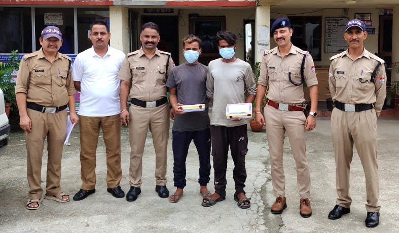 काशीपुर। वरिष्ठ पुलिस अधीक्षक उधम सिंह नगर द्वारा अपराधियों के विरु( चलाए जा रहे अभियान के तहत पुलिस अधीक्षक काशीपुर एवं क्षेत्राधिकारी काशीपुर के निर्देशन व पर्यवेक्षण में कोतवाली काशीपुर पुलिस द्वारा रात्रि में गश्त के दौरान एलडी भट्ट सरकारी अस्पताल के पीछे सुनसान स्थान पर चोरी की योजना बनाते दो शातिर चोरों को अवैध चाकुओं के साथ गिरफ्तार किया है। गिरफ्तार चोरों ने बताया कि वे नशे के आदी हैं पहले भी चोरी आदि कई मामलों में जेल जा चुके हैं। एसआई नवीन बुधानी चौकी प्रभारी कटोराताल की फर्द बरामदगी के आधार पर अभियुक्तों के विरु( धारा 401 भादवि एवं आर्म्स एक्ट का अभियोग पंजीकृत कर न्यायालय पेश किया गया गिरफ्तार अभियुक्तांे ने अपना नाम मोनिस पुत्र मतलूब निवासी सैयदपुरा चौकी जलालपुर थाना डिलारी जिला मुरादाबाद उत्तर प्रदेश व अख्तर अली पुत्र पप्पू निवासी शिवांगी कालोनी प्रतापपुर थाना काशीपुर बताया है।