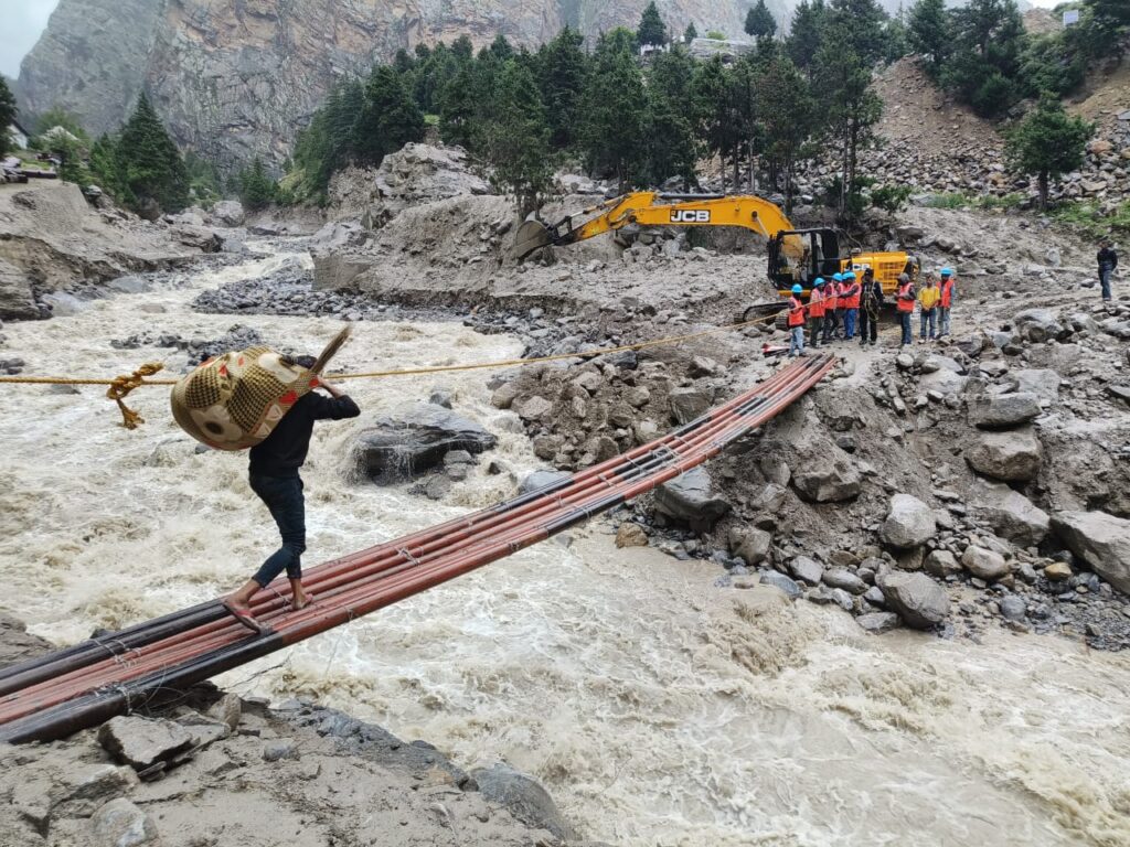देहरादून । बीआरओ के शिवालिक परियोजना ने जोशीमठ.मलारी मार्ग पर पैदल आवाजाही के लिए वैकल्पिक रास्ता तैयार कर लिया है। रास्ता बनने से करीब 20 सीमावर्ती गावों में कनेक्टिविटी स्थापित हो गई है। वैकल्पिक काउजवे बनाकर अब बाद यहां वाहनों का भी आवागमन शुरू कर दिया जाएगा। ज्ञात हो कि प्रतिकुल मौसम की मार झेल रहे जोशीमठ.मलारी हाईवे पर सोमवार शाम ग्लेशियर टूटने के बाद आये जुम्मा नाला में उफान एवं चट्टानी स्खलन के कारण पुल को क्षति पहुंची थीए जिसके बाद से क्षेत्र के नीतीए मलारीए जेलमए बाम्मा सहित सीमावर्ती गांवों के लोगों के साथ चीन सीमा पर तैनात सेना की इकाइयों की आवाजाही ठप हो गई थी। बीआरओ ने मंगलवार को ही यहां रास्ता बनाने का काम शुरू कर दिया था। अब वैकल्पिक अस्थायी रास्ता तैयार कर लिया गया है जिससे स्थानीय लोगों के साथ सेना के जवानों ने भी पैदल आवागमन प्रारंभ कर दिया है