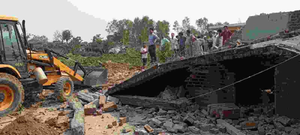 तालाब की भूमि पर अवैध कब्जा कर बनाए गए निर्माणों पर चला योगी आदित्यनाथ का बुलडोजर