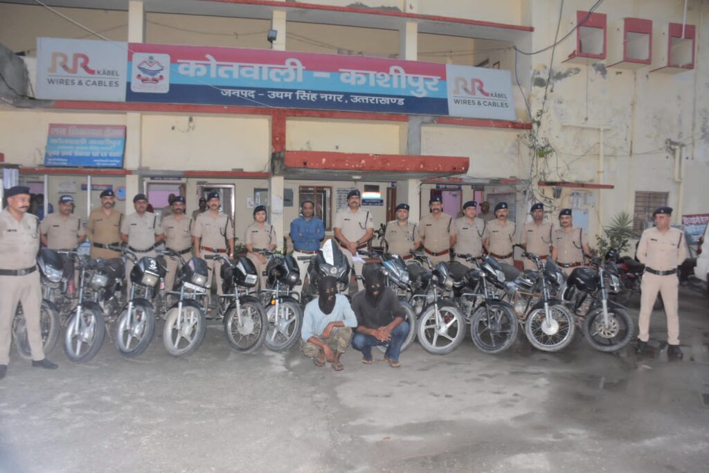 काशीपुर। काशीपुर व आईटीआई थाना क्षेत्र के साथ ही रामनगर और गाजियाबाद से चोरी की गई 14 मोटरसाईकिलें बरामद कर पुलिस टीम ने काशीपुर निवासी दो युवकों को गिरफ्तार किया है। काशीपुर क्षेत्र में मोटरसाईकिल चोरी की घटनाओं के संबंध में अज्ञात पर मुकदमा पंजीकृत कर इन घटनाओं के अनावरण के लिये पुलिस टीम का गठन किया गया।