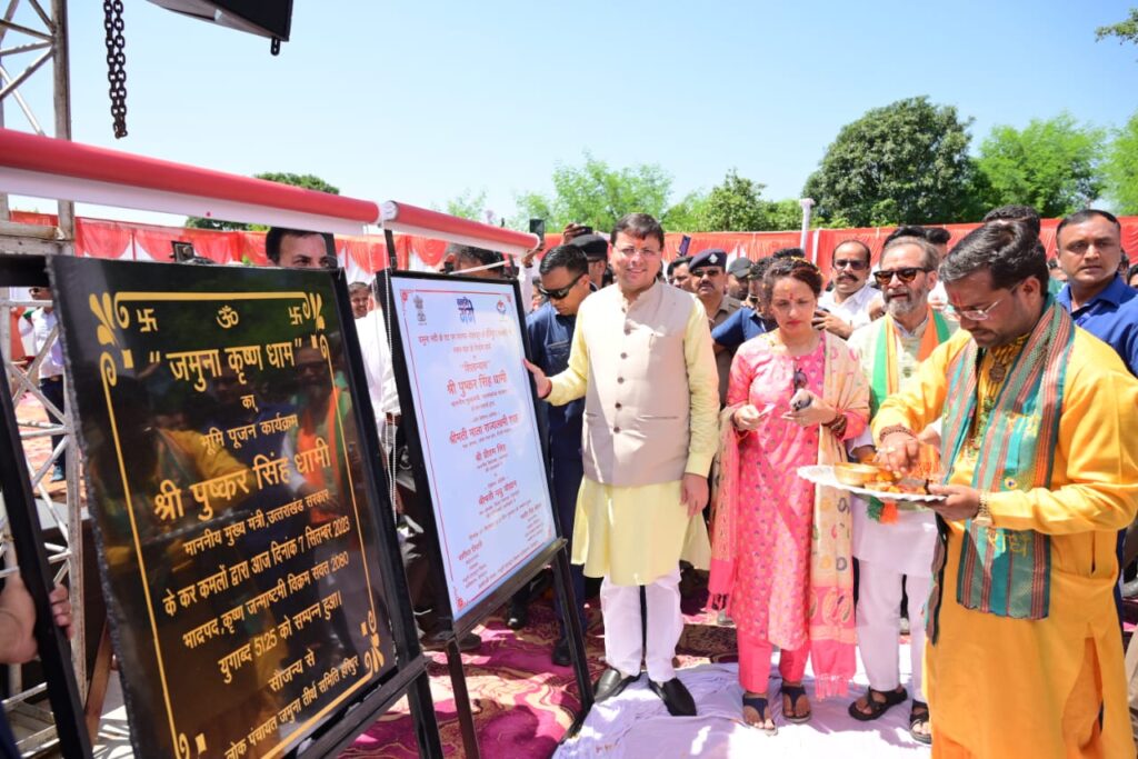 देहरादून। मुख्यमंत्री पुष्कर सिंह धामी ने गुरुवार को कालसी, देहरादून स्थित रामलीला मैदान में आयोजित कार्यक्रम में प्रतिभाग करते हुए यमुना नदी के तट पर हरिपुर (कालसी) में स्नान घाट/यमुना घाट के निर्माण कार्य एवं लोक पंचायत द्वारा प्रस्तावित जमुना कृष्ण धाम (मंदिर) का शिलान्यास किया। इस दौरान उन्होंने जौनसार बावर के बॉलीवुड सिंगर अभिनव चैहान के भजन ‘‘हरिपुर में आनंद सजेगा’’ का भी विमोचन किया। मुख्यमंत्री पुष्कर सिंह धामी ने जन्माष्टमी की शुभकामनाएं देते हुए कहा कि जन्माष्टमी के पावन पर्व के अवसर पर हरिपुर क्षेत्र के नव निर्माण का कार्य एक शुभ संकेत है। यह कार्य पौराणिक मान्यताओं को पुनर्जीवित करने एवं आध्यात्मिक, सनातन संस्कृति के नए अध्याय को लिखने का कार्य करेगा। उन्होंने कहा हरिपुर क्षेत्र एक बड़ा तीर्थ स्थल हुआ करता था, यह क्षेत्र चार धाम यात्रा का भी एक महत्वपूर्ण स्थल है। मुख्यमंत्री पुष्कर सिंह धामी ने कहा कि हरिपुर क्षेत्र में यमुना जी के तट को विकसित कर एक नए तीर्थ स्थल के रूप में आगे बढ़ाया जाएगा। यह क्षेत्र हरिद्वार ऋषिकेश के भांति विश्व विख्यात हो इसके लिए राज्य सरकार हर संभव मदद करेगी। उन्होंने कहा मां यमुना के आशीर्वाद से भव्य घाट निर्माण का संकल्प पूरा होगा। धार्मिक एवं पौराणिक मान्यताओं का हरिपुर स्थल सभी प्रदेश एवं देशवासियों की आस्था का केंद्र है। मुख्यमंत्री पुष्कर सिंह धामी ने कहा कि राज्य सरकार ने हरिपुर धाम के यश को पुनसर््थापित करने का जो संकल्प लिया है उसे शीघ्र ही सिद्धि तक पहुंचाएगी। मां यमुना का सम्मान करना हम सभी का कर्तव्य है। उन्होंने कहा हरिपुर के एक नए धार्मिक स्थल के रूप में विकसित होने से क्षेत्र में रोजगार के अवसर पैदा होंगे। भविष्य में इस क्षेत्र में बड़ी संख्या में यात्री एवं पर्यटक आएंगे। आज जौनसार बाबर का क्षेत्र जो फलों सब्जियों के उत्पादन के लिए जाना जाता है आने वाले समय में वह हरिपुर के लिए भी जाना जाएगा। मुख्यमंत्री पुष्कर सिंह धामी ने कहा कि हरिपुर क्षेत्र यमुना, टोंस, नौरा और अमलवा के महासंगम का पवित्र स्थान है। इस स्थान में पूर्व की भांति ही यमुना जी की दिव्य व भव्य आरती का भी आयोजन नियमित रूप से होगा। उन्होंने कहा इस क्षेत्र में आने वाले लोग यहां की लोक संस्कृति के साथ हमारे आदर सम्मान को भी अपने साथ ले जाएंगे। मुख्यमंत्री पुष्कर सिंह धामी ने कहा कि केंद्र सरकार के सहयोग से राज्य सरकार निरंतर विकास के पद पर अग्रसर है उत्तराखंड के प्रमुख धामों को सड़कों से जोड़ा गया है। हरबर्टपुर से यमुनोत्री तक सड़क चैड़ीकरण की भी केंद्र द्वारा सैद्धांतिक सहमति मिल चुकी है। जिसका कार्य जल्द ही शुरू किया जाएगा इससे विकास नगर 