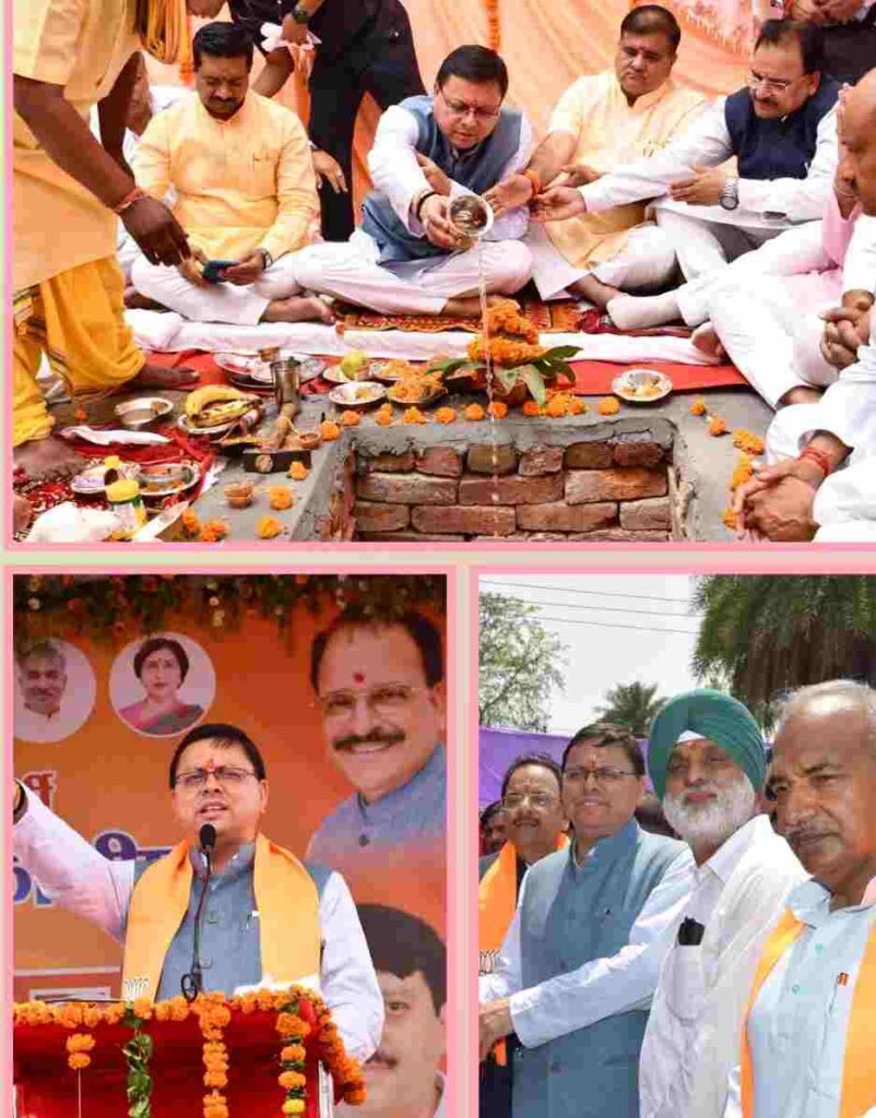 मुख्यमंत्री श्री धामी ने जनसमूह को सम्बोधित करते हुए कहा कि आज हमारे लिए बड़ी खुशी का दिन है, क्योंकि आज जहां एक ओर मां बाल सुंदरी देवी के आशीर्वाद और आप सभी की सेवा, समर्पण और पार्टी के प्रति सच्ची निष्ठा के बल पर पार्टी कार्यालय का भूमि पूजन संपन्न हुआ वहीं जल निगम, जल संस्थान एवं लोक निर्माण विभाग की लगभग 287.36 करोड़ से अधिक की 102 योजनाओं का शिलान्यास तथा जल निगम, जल संस्थान ग्रामीण निर्माण विभाग एवं लोक निर्माण विभाग की लगभग 67.91 करोड़ से अधिक की 11 योजनाओं का लोकार्पण भी किया गया। इन सभी योजनाओं के पूर्ण होने के उपरांत क्षेत्र में विकास के एक नए युग का सूत्रपात होगा। मुख्यमंत्री ने स्व. श्यामा प्रसाद मुखर्जी को भी नमन किया और कहा कि उन्होंने जनसंघ के रूप में ऐसे राष्ट्रवादी संगठन की नींव रखी जो आज भारतीय जनता पार्टी के रूप में सम्पूर्ण विश्व का सबसे बड़ा राजनीतिक संगठन बन चुका है। महान विचारक स्व.दीनदयाल उपाध्याय एवं पूर्व प्रधानमंत्री भारत रत्न स्व. अटल बिहारी वाजपेयी को भी उन्होंने नमन किया। कहा कि हमारा संगठन शायद विश्व का एक मात्र संगठन होगा जहां नेता महत्वपूर्ण नहीं होता, बल्कि विचारधारा और पार्टी कार्यकर्ता महत्वपूर्ण होते हैं, क्योंकि यदि आज हमारी पार्टी विश्व के सबसे बड़े संगठन के रूप में अपनी यश पताका को सम्पूर्ण विश्व में फहरा रही है तो इसके पीछे करोड़ों कार्यकर्ताओं का समर्पण, श्र(ा, विश्वास और कड़ी मेहनत है। भारतीय जनता पार्टी ही एक मात्र राजनीतिक संगठन हैं जहां पार्टी के पोस्टर चिपकाने वाला व्यक्ति भी शीर्ष पद तक पहुंच सकता है और मुझ जैसा सामान्य परिवार से आने वाला कार्यकर्ता प्रदेश का मुख्य सेवक बन सकता है। क्योंकि हमारी पार्टी राष्ट्र प्रथम, संगठन द्वितीय तथा व्यक्ति अंतिम के सि(ांत का अनुसरण करती है। आज देश में प्रधानमंत्री के आह्वान पर जिस ’नव भारत’ के निर्माण के यज्ञ का आयोजन किया जा रहा है उसमें हम सभी कार्यकर्ताओं ने अपने श्रम की आहुति देनी है तथा ’एक भारत’ और ’श्रेष्ठ भारत’ के महासंकल्प को साकार करना है।