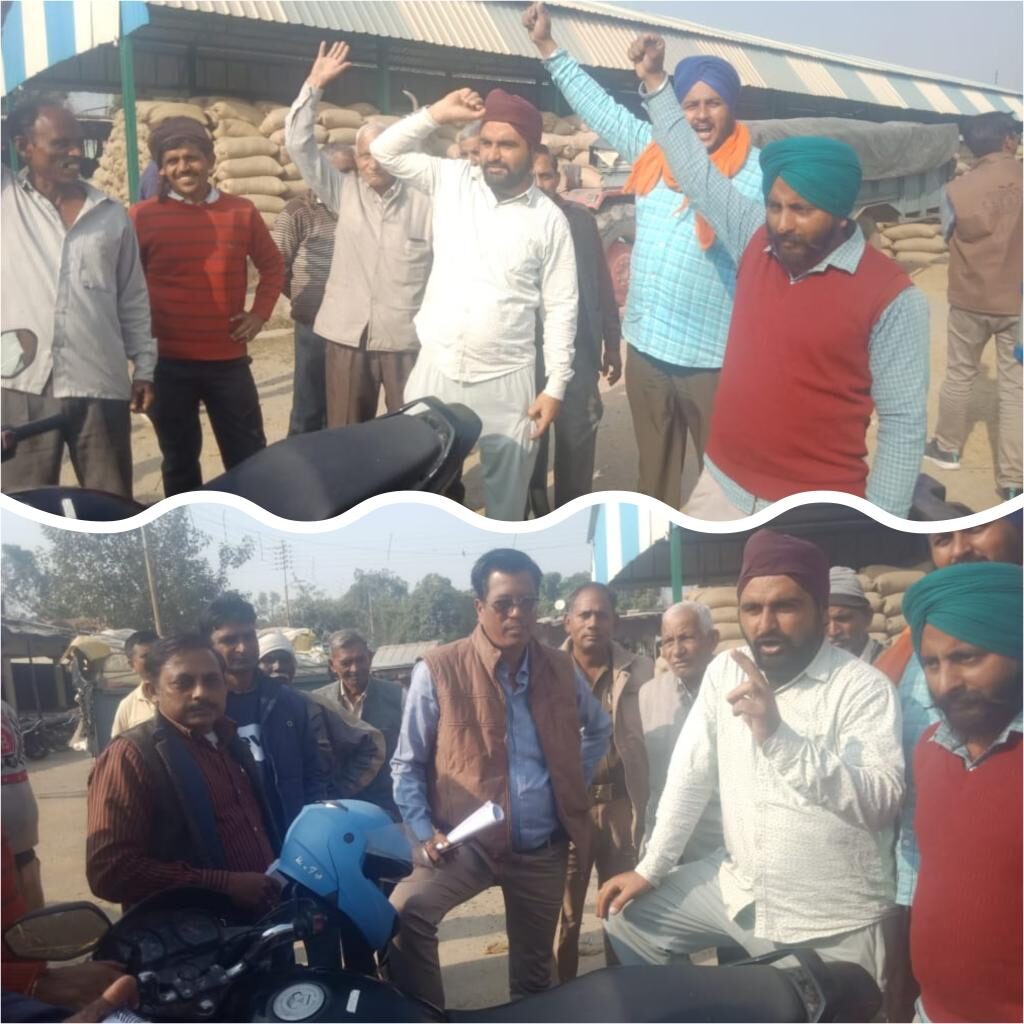 ठाकुरद्वारा मंडी समिति में धान खरीद प्रभारी के खिलाफ प्रदर्शन करते किसान