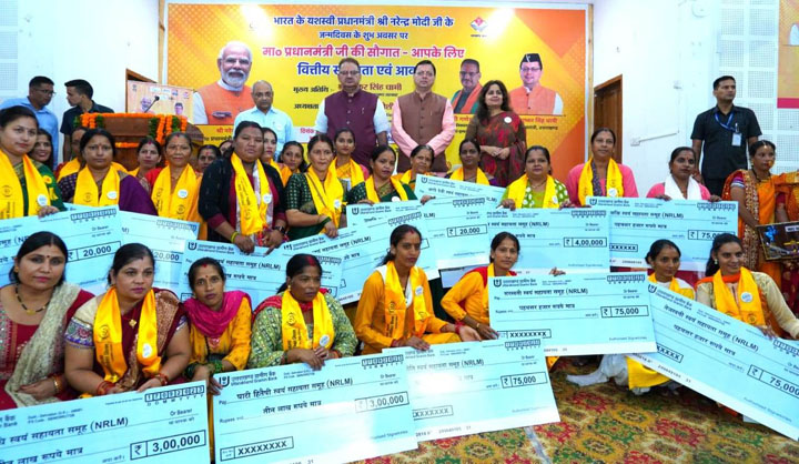 देहरादून। मुख्यमंत्री पुष्कर सिंह धामी ने रविवार को मुख्यमंत्री आवास स्थित मुख्य सेवक सदन में प्रधानमंत्री नरेन्द्र मोदी के जन्म दिवस के अवसर पर ‘‘मा. प्रधानमंत्री की सौगात-आपके लिए’’ कार्यक्रम में राष्ट्रीय ग्रामीण आजीविका मिशन के अन्तर्गत स्वयं सहायता समूहों एवं प्रधानमंत्री आवास योजना-ग्रामीण के अन्तर्गत 11 लाभार्थियों को आवास स्वीकृति पत्र, चाबी एवं घर के लिए बर्तन और सामान क्रय के लिए 05-05 हजार रुपये के चेक प्रदान किये। मुख्यमंत्री ने कहा कि प्रधानमंत्री आवास योजना-ग्रामीण के लाभार्थियों को अब घर के बर्तन और सामान के लिए 06-06 हजार रुपये दिये जायेंगे। मुख्यमंत्री ने कार्यक्रम के दौरान एनआरएलएम योजना के 25 लाभार्थियों को चेक प्रदान किये। 10 समूहों को 75-75 हजार के सामुदायिक निवेश फण्ड (सीआईएफ) के चेक प्रदान किये गये। 05 समूहों को 10-10 हजार रुपये के रिवाल्विंग फण्ड के चेक और 10 समूहों को 1.50 लाख से 06 लाख रुपये तक के चेक प्रदान किये गये। राज्य में एनआरएलएम योजना के तहत 5.01 लाख महिलाओं को संगठित कर 64 हजार 686 समूहों, 06 हजार 551 ग्राम संगठनों एवं 392 क्लस्टर स्तरीय संगठनों का गठन किया गया है। मुख्यमंत्री पुष्कर सिंह धामी ने प्रधानमंत्री नरेन्द्र मोदी को जन्मदिन की शुभकामनाएं देते हुए भगवान केदारनाथ और भगवान बद्रीविशाल से उनके सुदीर्घ जीवन की कामना की। अपने जन्मदिन के सुअवसर पर देवभूमि की बहनों को पक्के मकान के रूप में विशेष उपहार देने पर उन्होंने प्रधानमंत्री का आभार व्यक्त किया। मुख्यमंत्री ने कहा कि हमारे बीच अनेकों ऐसे परिवार हैं जिनके लिए अपना खुद का घर मिलना किसी सपने के पूर्ण होने से कम नहीं है। गरीबों को अपना पक्का घर देना योजना मात्र नहीं है, यह प्रदेश के एक-एक वंचित को इस बात का विश्वास देने की प्रतिबद्धता है कि सरकार उनके सशक्तिकरण के लिए दृढ़ संकल्पित है। प्रधानमंत्री के नेतृत्व में सरकार हर गरीब तक पहुंचने का काम कर रही है। मुख्यमंत्री ने कहा कि प्रधानमंत्री के नेतृत्व में देश में पिछले 9 वर्षों में करीब 4 करोड़ से अधिक पक्के घर गरीब परिवारों को मिल चुके हैं। इनमें से करीब 70 प्रतिशत घर महिलाओं के नाम पर हैं। जब कोई सरकार अंत्योदय को अपना ध्येय मानकर कार्य करती है तो उसके परिणाम अलग होते हैं। राज्य में इस योजना के अंतर्गत प्रारम्भ से अब तक कुल 36229 आवासों का निर्माण पूर्ण करते हुए 609.24 करोड़ की धनराशि डीबीटी के माध्यम से लाभार्थियों के बैंक खाते में हस्तान्तरित की जा चुकी है। देश में जिस स्तर पर शोषितों और वंचितों का आज सशक्तिकरण हो रहा है वैसा आज से पहले कभी नहीं हुआ। प्रधानमंत्री के मार्गदर्शन में उत्तराखंड में भी विकास के एक नए युग का सूत्रपात हो चुका है। प्रदेश के आधारभूत ढां